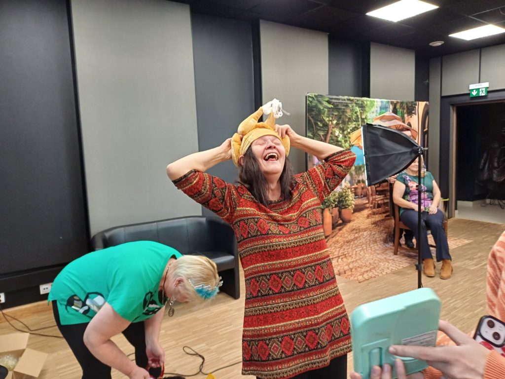 2 grudnia 2025 Sesja zdjęciowa c.d. Natasza Aktualności, Osoby z niepełnosprawnością, Seniorzy, Teatralnie Duzi bawią się lepiej niż dzieci. Kolejny dzień sesji zdjęciowej do kalendarza. Śmiech, zabawa, żarty, wygłupy. Normalnie otworzyliśmy bramkę w krainę dzieciństwa. Projekt „Starość w radość” współfinansowany przez Urząd Miasta Bielsk Podlaski