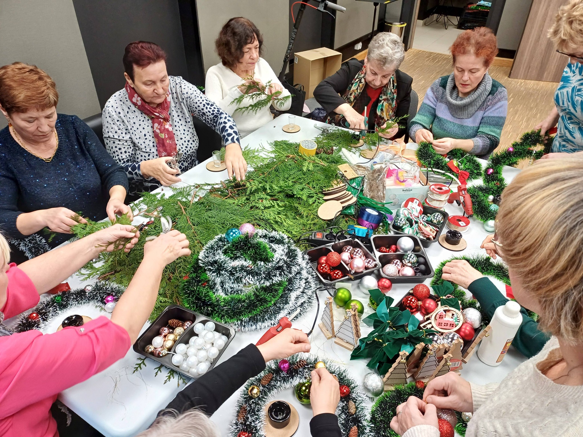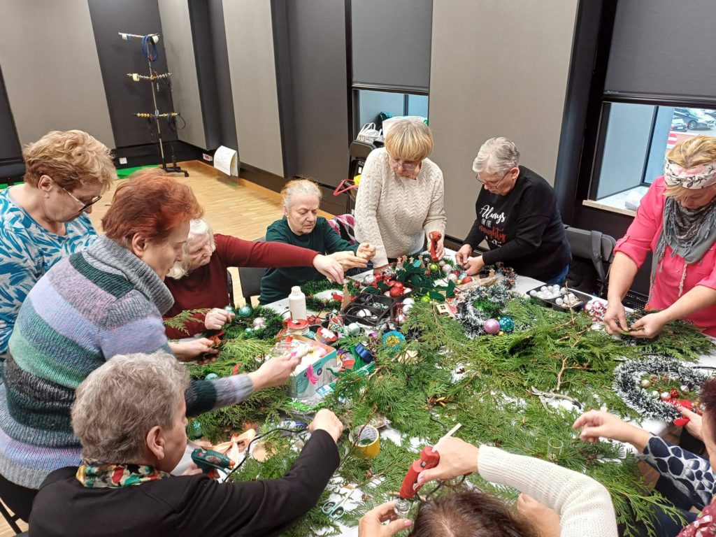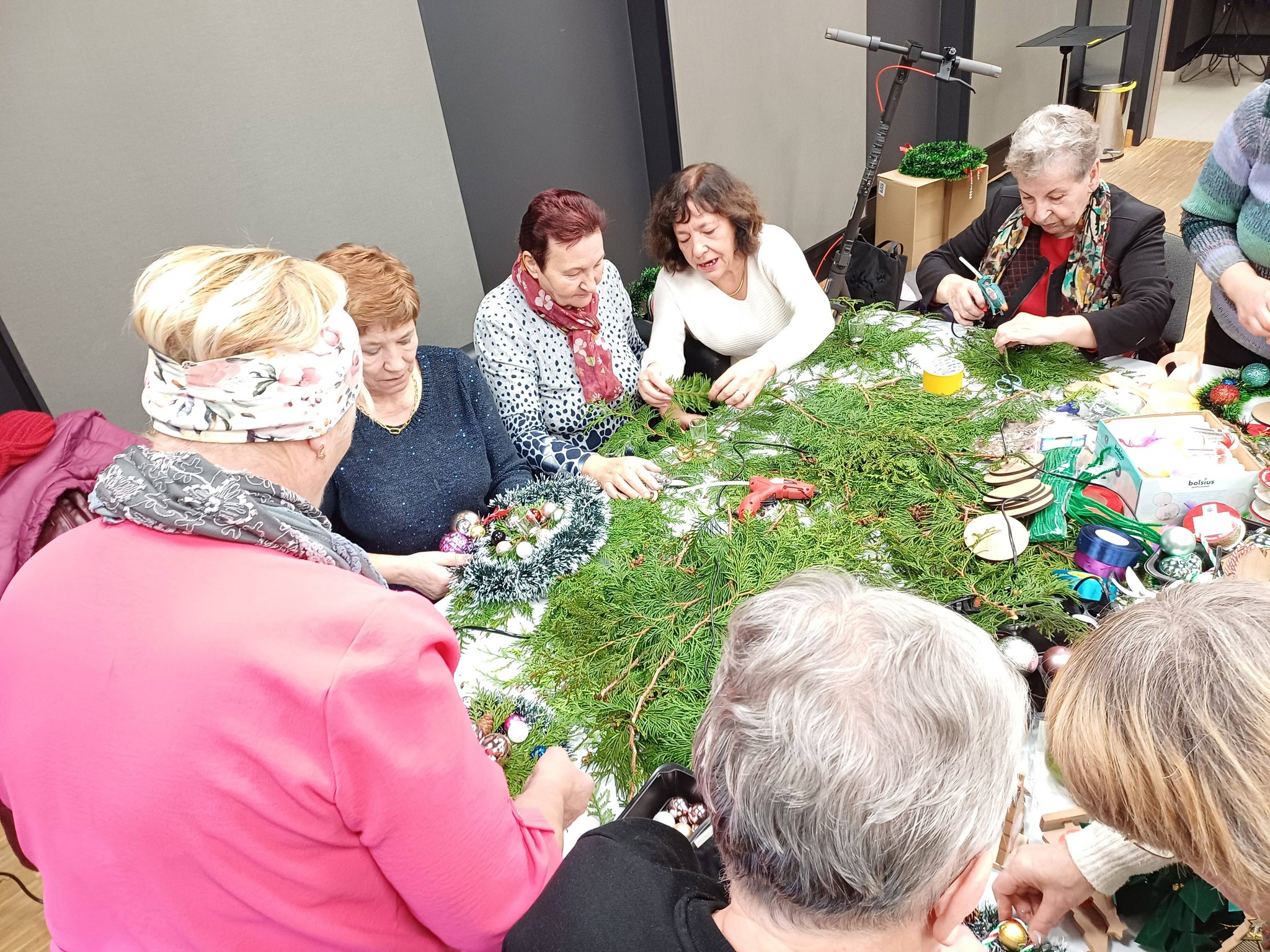 Stroiki świąteczne w wykonywaniu bielskich seniorek. Zabawa i miło spędzony czas w doborowym towarzystwie. Dziękujemy Bielski Dom Kultury za miejsce.