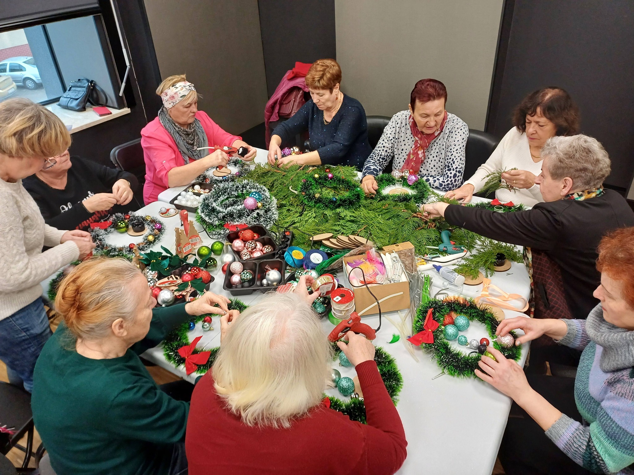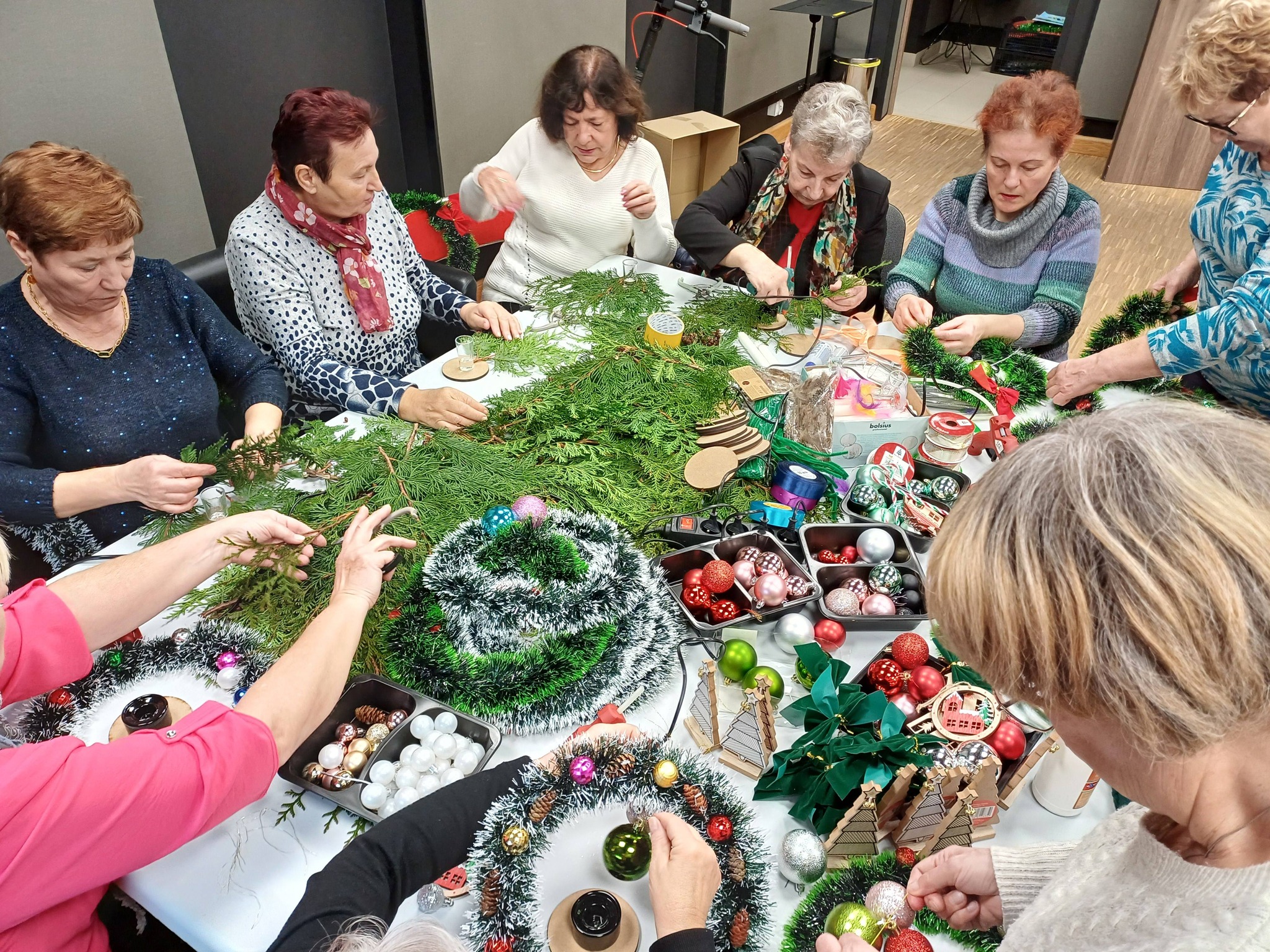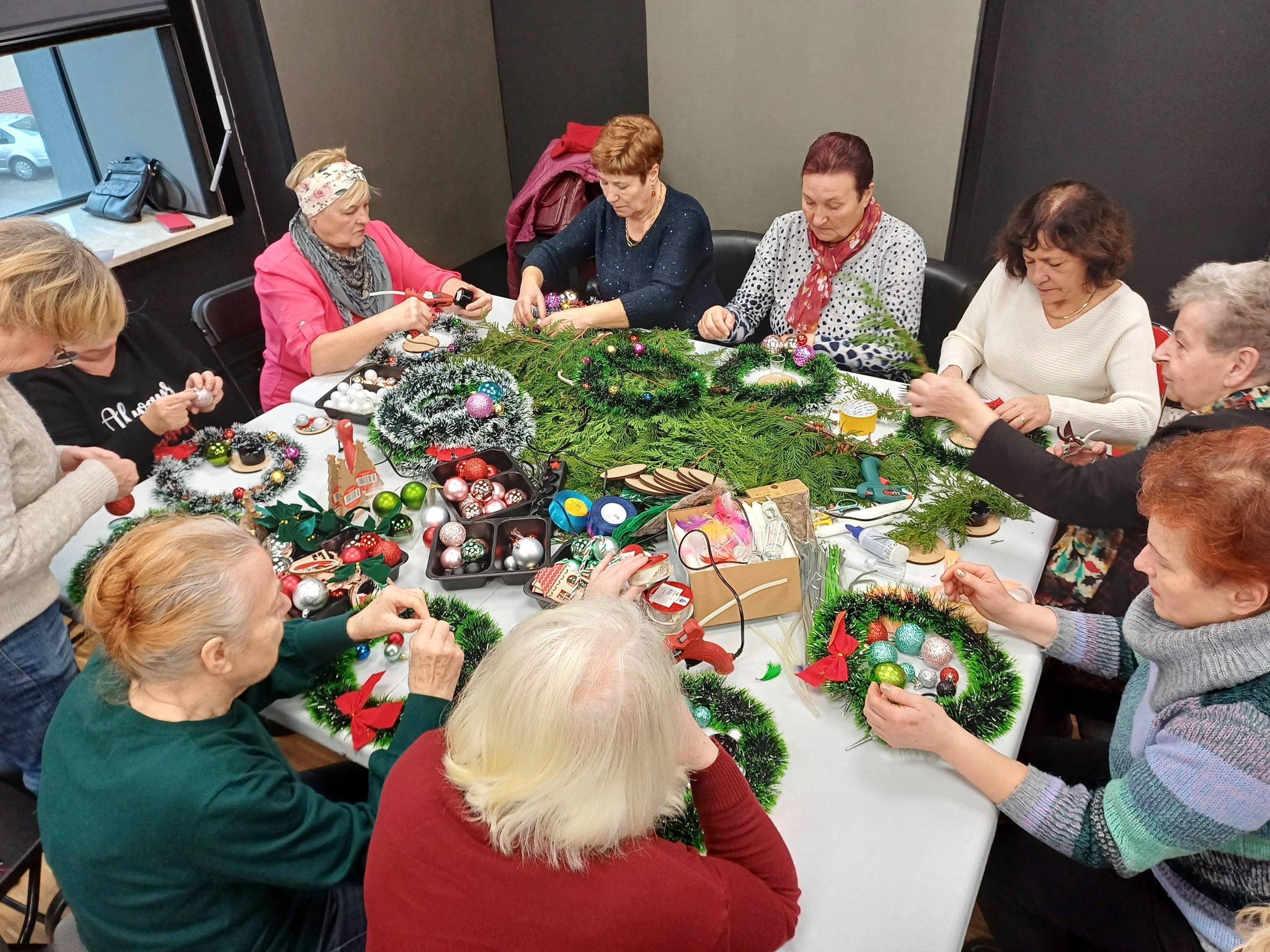 Stroiki świąteczne w wykonywaniu bielskich seniorek. Zabawa i miło spędzony czas w doborowym towarzystwie. Dziękujemy Bielski Dom Kultury za miejsce.